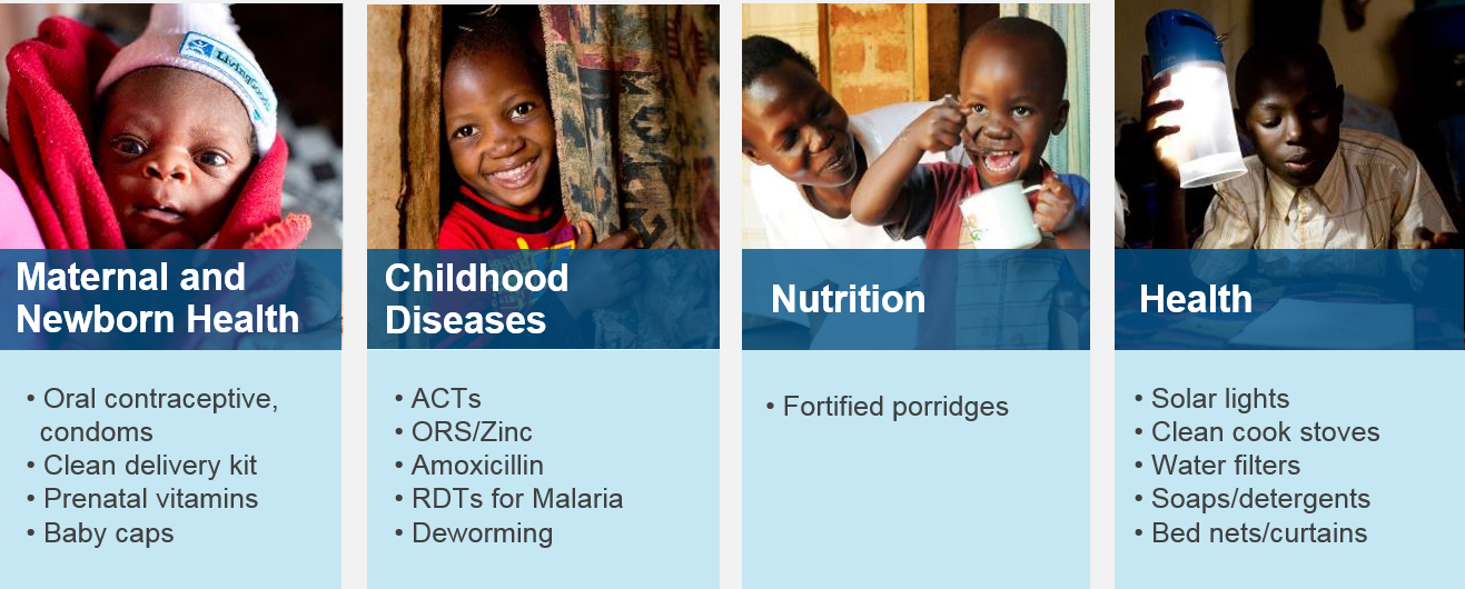 The model is designed to address key shortcomings faced by both end users and health care workers. For end users there is a high cost burden involved in attaining medicines and key products needed for a healthy pregnancy. Even though health systems offer certain medicines for free, users are still faced with transport costs not forgetting the cost of time spent travelling waiting. Once at the clinic, surveys have shown that there is only a 50% probability of medicines being in stock. As such Living Goods have pegged their average price per treatment at 50 cents (USD) making this a much more affordable proposition for end users.